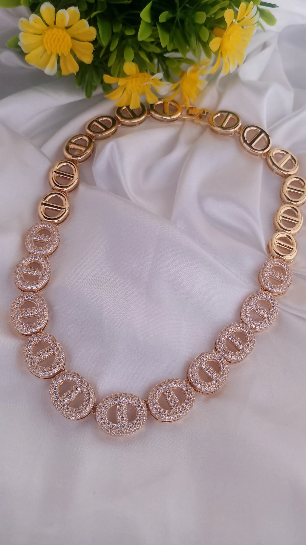 choker com acabamento refinado e cravejada em nano zircônias que oferecem brilho delicado e sofisticado. Esta peça une elegância e modernidade, perfeita para realçar qualquer look com um toque sutil e luxuoso. Ideal para quem busca um acessório versátil, que transita do dia à noite com muito estilo. Invista em uma joia que traduz delicadeza e exclusividade em cada detalhe.
